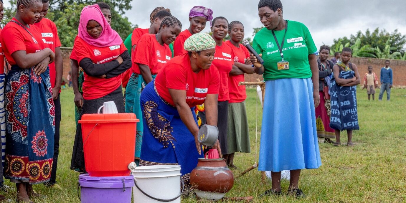 The Chimbiya community in Malawi demonstrates the use of water at the commissioning of the Chimbiya project where a 100m deep borehole was drilled. The borehole was equipped with a motorised electric pump, reticulating the water to ten communal-style distribution points around the community, culminating in supplying water to approximately 15 000 inhabitants in Chimbiya trading Centre.